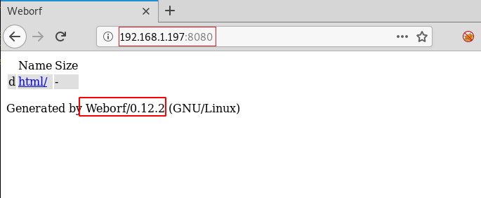 We noticed that we have a directory listing with a sweet little footnote claiming that Weborf is running on this machine. We also got the version information from it. This server a good example of why information disclosure is a vulnerability.