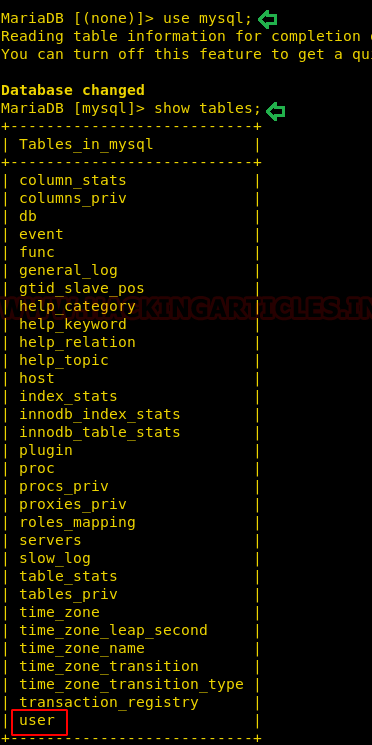 use mysql; show tables;