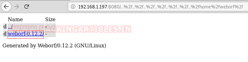 Now without moving around much, we decided to search the Weborf using searchsploit. If we don’t get a hit, then we will try something else. But we got a successful hit. It said that this version of the Weborf is vulnerable to Directory Traversal Exploit. This could be our way in. We downloaded the exploit contents on our attacker machine to get a read on this. The exploit gives us the path that is vulnerable. Let’s try that on our Target Machine.