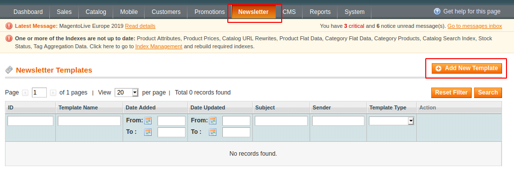 Now proceed to the Newsletter Section and Click on Add New Template.