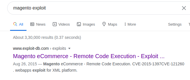 During our past experiences, we have found that there are a bunch of vulnerabilities on the Magento Framework. So, we searched for some probable exploits.