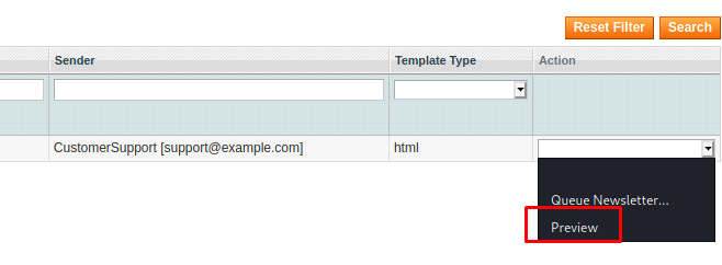 Now getting back to the Newsletter Template Section, we see that our newly created newsletter is visible. Before executing it, we run a listener on the port mentioned in the reverse shell. After that, we proceed to Preview the Newsletter template as shown in the image below.