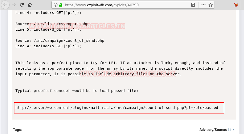 On exploring the following link, we got proof-of-concept would be to load passwd file.