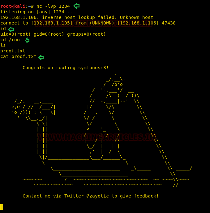 After waiting for some time, we got the root shell of the target system and eventually got the root flag.