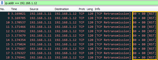 Hence from given below image, you can observe that Wireshark has captured exactly the same information which we had a bind in the packet during packet Assembly and packet Editing modes such as TCP protocol and TCP-RST packet.