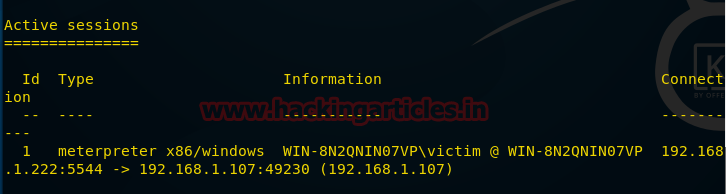 From the given image you can observe there are two sessions 1st as the meterpreter session of windows system and 2nd as command shell of the telnet server.