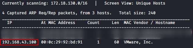 We downloaded, imported and ran the virtual machine (.ova) on the VMWare Workstation, the machine will automatically be assigned an IP address from the network DHCP. To begin we will find the IP address of our target machine, for that use the following command as it helps to see all the IP’s in an internal network: