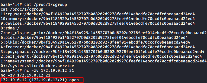 cat /proc/1/cgroup nc -zv 172.19.0.12 21