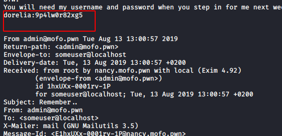 Let’s dig into that. There was some elaborate story in those emails but in the end, these mails have some credentials. It was for the user dorelia.
