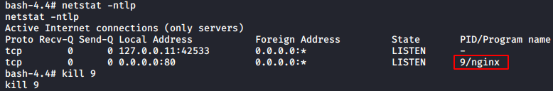 Since the Tempus Fugit original webpage is still running on the target IP Address, we need to kill that process in order to access this CMS. We ran the netstat command and found that Nginx running with the PID 9. So, we killed it.