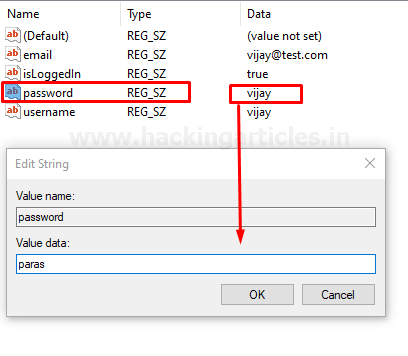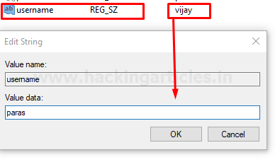 Change the Password value to Vijay to paras or you’re on own as by giving a double click to the registry of Password as shown below.