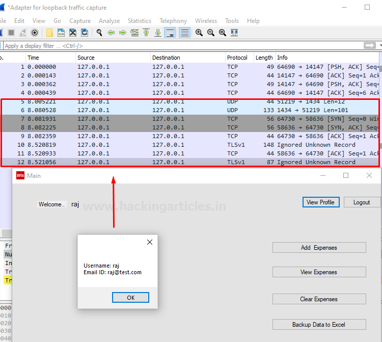 Just after login to application come back to the Wireshark and you can see there are lots of traffic going there just refresh the capture and again login to the DVTA application and just after hitting the login button come back to Wireshark and its better to stop the capture immediately after clicking the login button so it won’t capture unnecessary traffic as shown below in image where I opened two different tabs one of Wireshark and another one is DVTA application just to see how it capture the traffic when I press the login button.