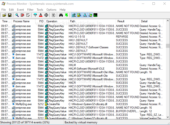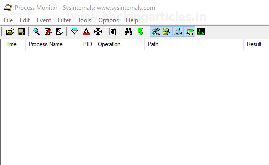 Just after the opening of Procmon application, you can see this process monitor is showing lot’s of traffic and the reason behind of that is it picks up all of the processes and shows the output of all the processes In its window.