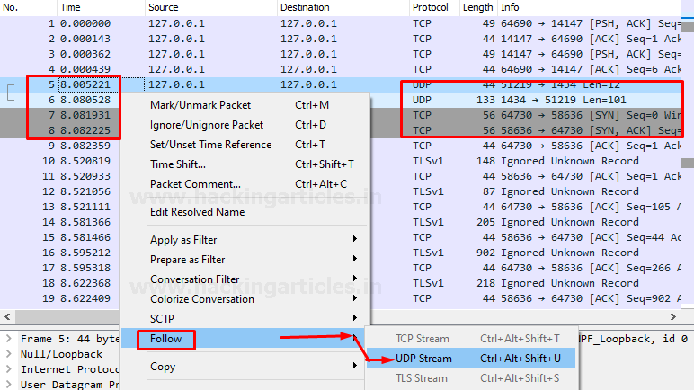 Now what we’re interested in is to understand how this login is making communication with the server. If you look there are some packets that uses UDP protocol so let’s open it in UDP stream and then let’s see what we can find.