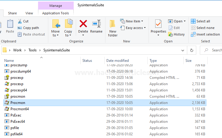 Let’s open up the application Procmon which you can find in the folder of Sysinternals suite.