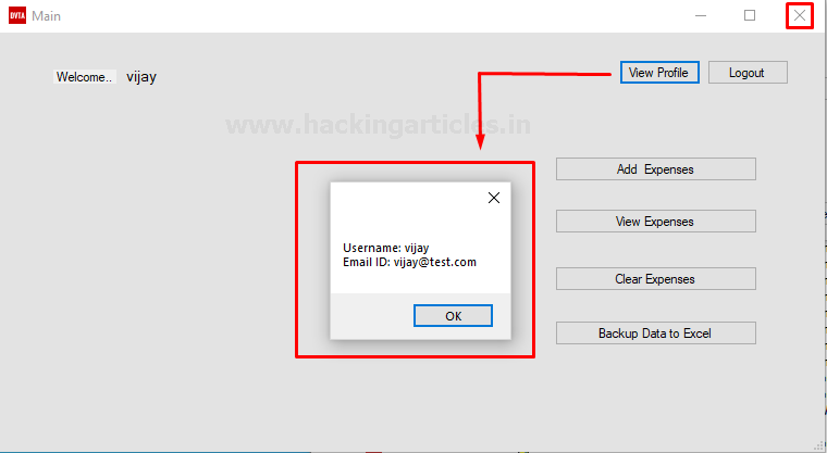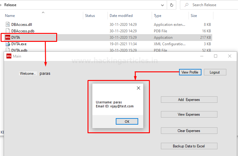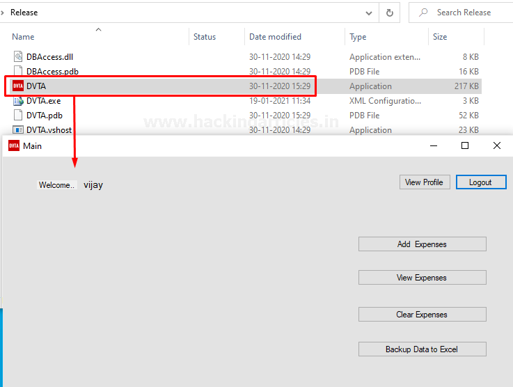 Now go back to the modified DVTA application and login to the application by using login credentials.