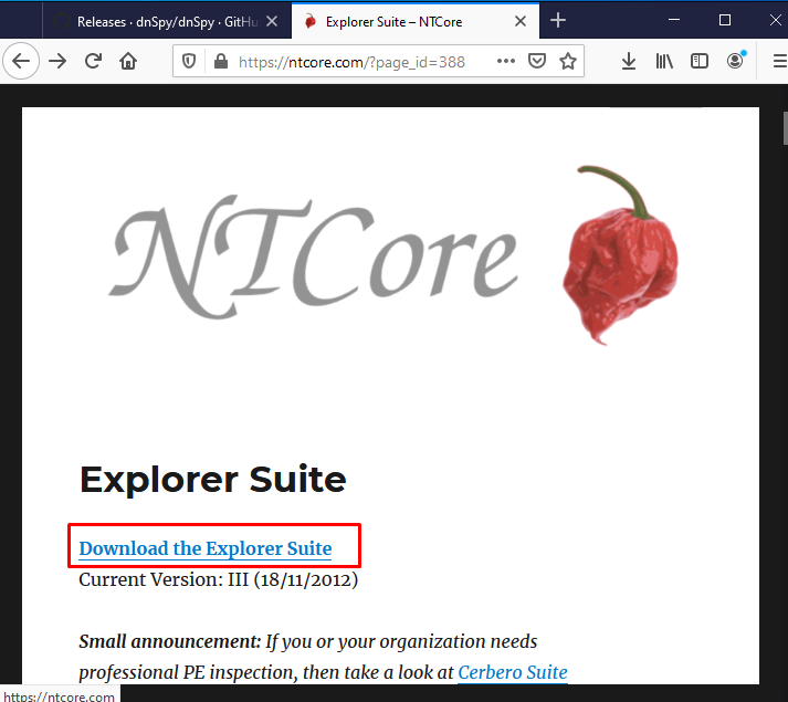 You can directly install CFF Explorer from here: – https://ntcore.com/files/ExplorerSuite.exe