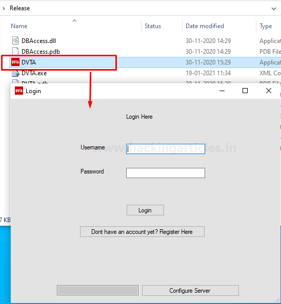 Let’s open up the DVTA application and login to the application by using user credentials as shown below and on the other tab process monitor start capturing the traffic.