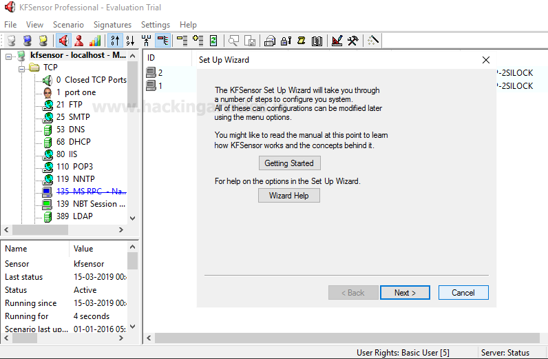 KFSensor’s role is to be a decoy server for the attackers in order to protect the real thing. It perfectly performs its job by opening fake ports on the system. There it is installed and gathers information when a user makes a connection. It does this in precisely the same way as a routine server program, such as a web server or an SMTP server. By doing this it sets up a target, or a honeypot server, that will record the activities of an attacker.