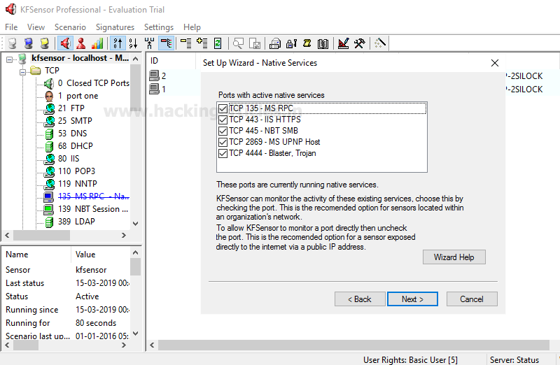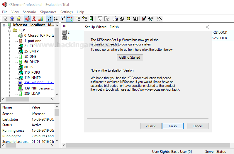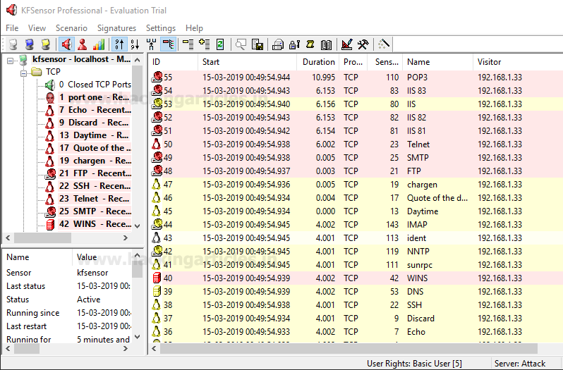 KFSensor’s role is to be a decoy server for the attackers in order to protect the real thing. It perfectly performs its job by opening fake ports on the system. There it is installed and gathers information when a user makes a connection. It does this in precisely the same way as a routine server program, such as a web server or an SMTP server. By doing this it sets up a target, or a honeypot server, that will record the activities of an attacker.