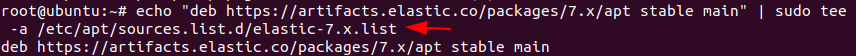 echo "deb https://artifacts.elastic.co/packages/6.x/apt stable main" | sudo tee -a /etc/apt/sources.list.d/elastic-6.x.list