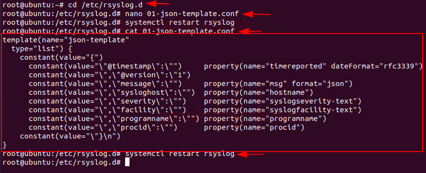 Now we have log forwarding, create a 01-json-template.conf file in the same folder