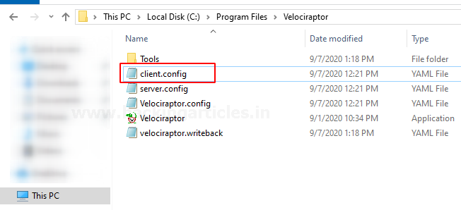 Next, come to the Directory where the Velociraptor server installed and copy the configuration of the client.config