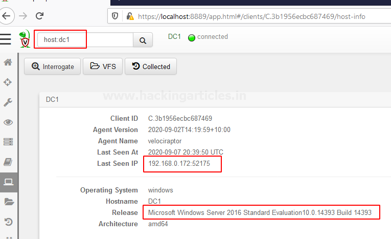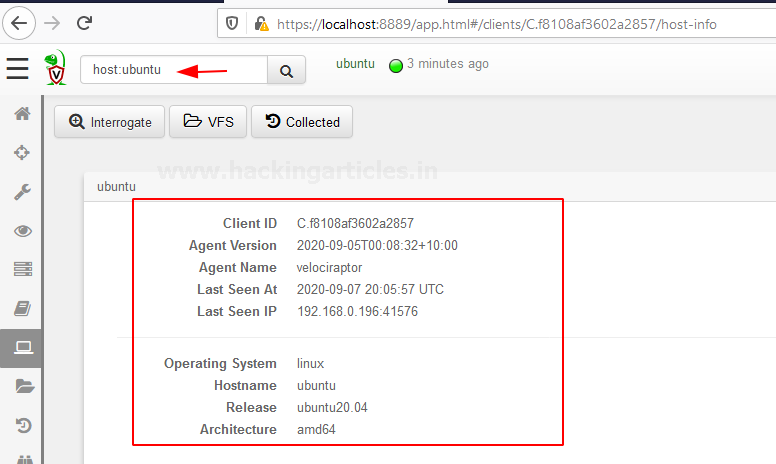 Come back to the Velociraptor server and verify, whether the client is reflected on the GUI interface or not by simply running a query in the search box