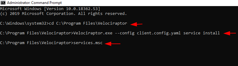 cd C:\Program Files\Velociraptor Velociraptor.exe --config server.config.yaml service install services.msc