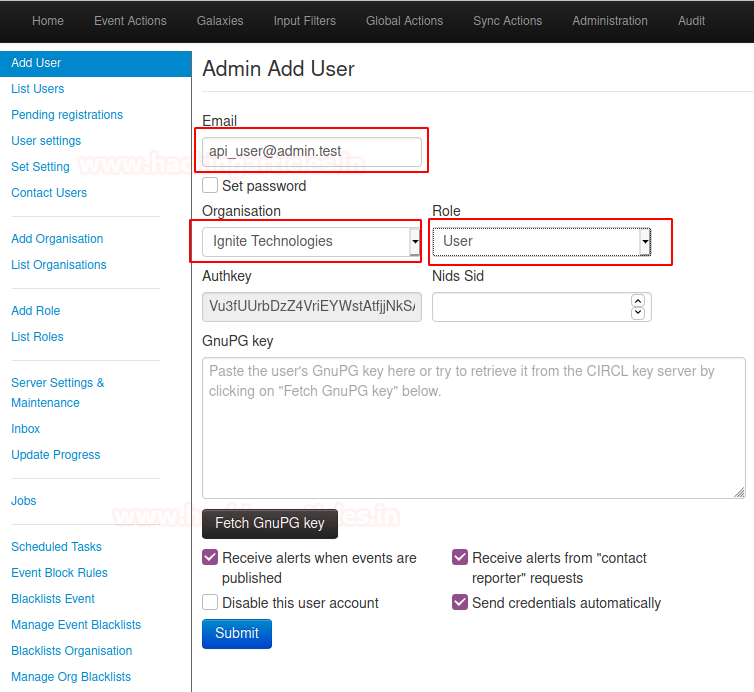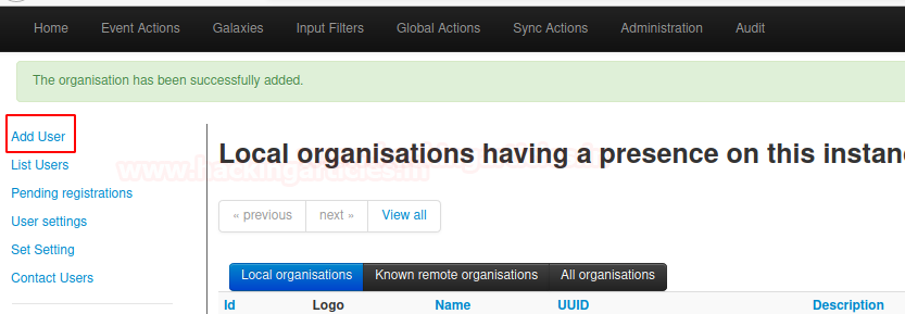 we have successfully created an organization let’s assign an Admin role to the organization all you need to do is head over to “Add User” under the section of “Administration”