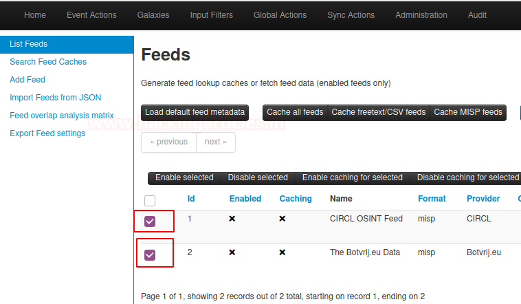 To enable feeds you will need to login to MISP console with the superuser account which is admin@admin.test account.
