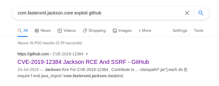 Next, we did some research and on google, we found a script that can be used to exploit com.fasterxml.jackson.core and is available on the github repository.