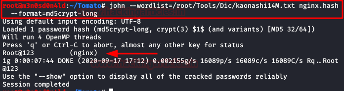 We crack hash with John and the kaonashi dictionary, we get the password, but this one will not be useful for any of the two users.