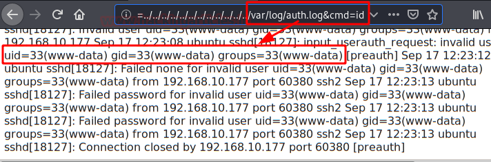 Since we can load files, let’s try to load log files, for example, that of the SSH service.