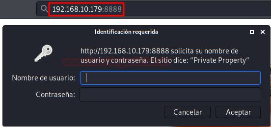 If we remember previously, in the 8888 service we were asked to authenticate the site by means of a .htpasswd.