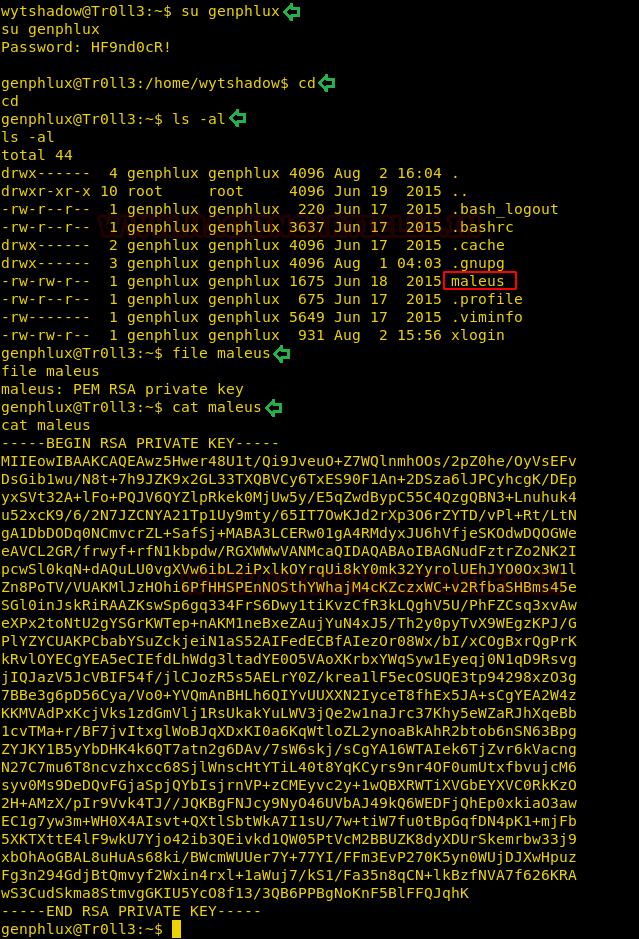 After logging in, we found a file named maleus as shown in the given image and by exploring this file we saw it stores RSA key.