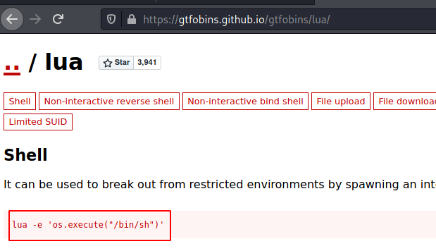 As we are not so versed in Lua, we refer to the gtfobins.github.io for the way to execute a shell via Lua.