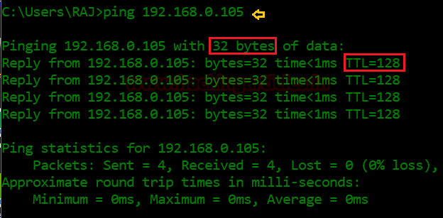 - The same size of payload received by source machine is 32 bytes from Destination machine (reply)