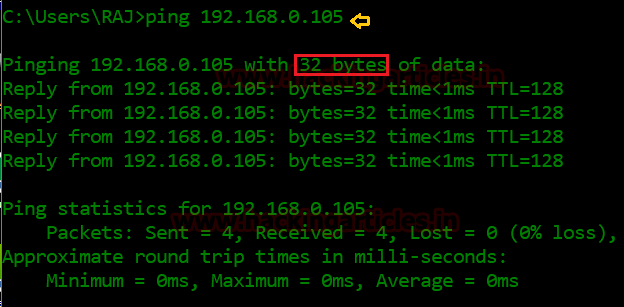 As we discussed above, the default size of the ICMP payload is 32 bytes and the maximum is 1472; if the size of the payload packet exceeds 1472, the system fragments the packet into smaller packets.