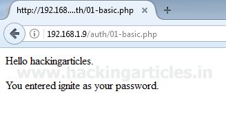 We are providing “hackingarticles” as User Name and “ignite” as a password.