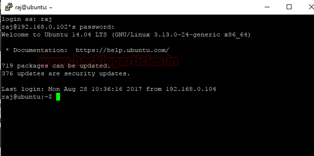 If the client having a valid credential for ssh then he will get successfully login into the server. From the given image you can see I had successfully login into the server. Hence inside server auth.log file, it will create a new record for SSH login successful.