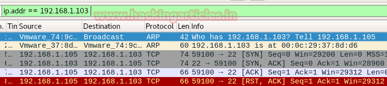 - TCP-RST packet sent from source 192.168.1.105 to 192.168.1.103.