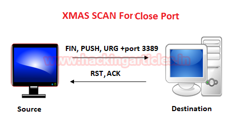 Similarly, if you perform a Fin scan against any close, then the source port will send a FIN packet to a specific port, and the destination will reply by sending RST and ACK packets.