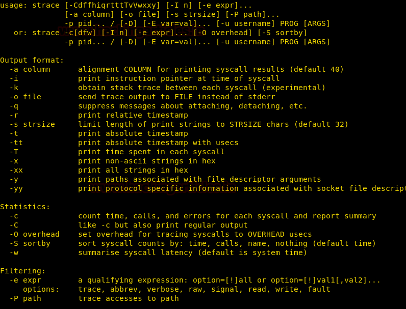On checking the help for “sysud64”, we find that it is actually executing strace.
