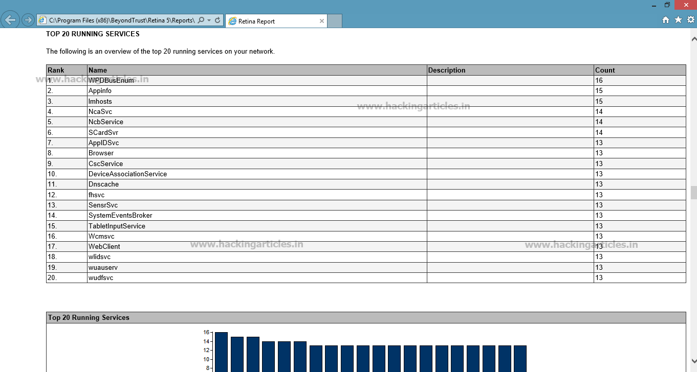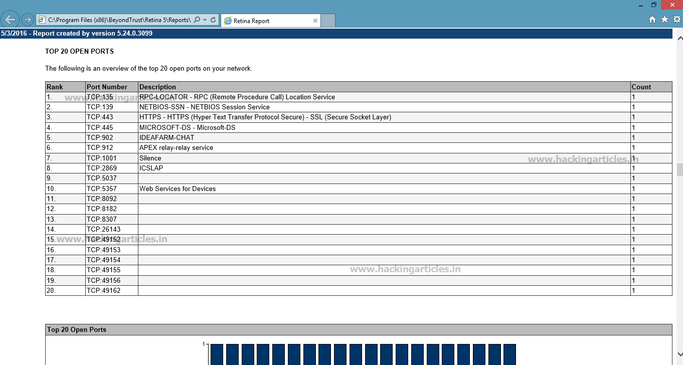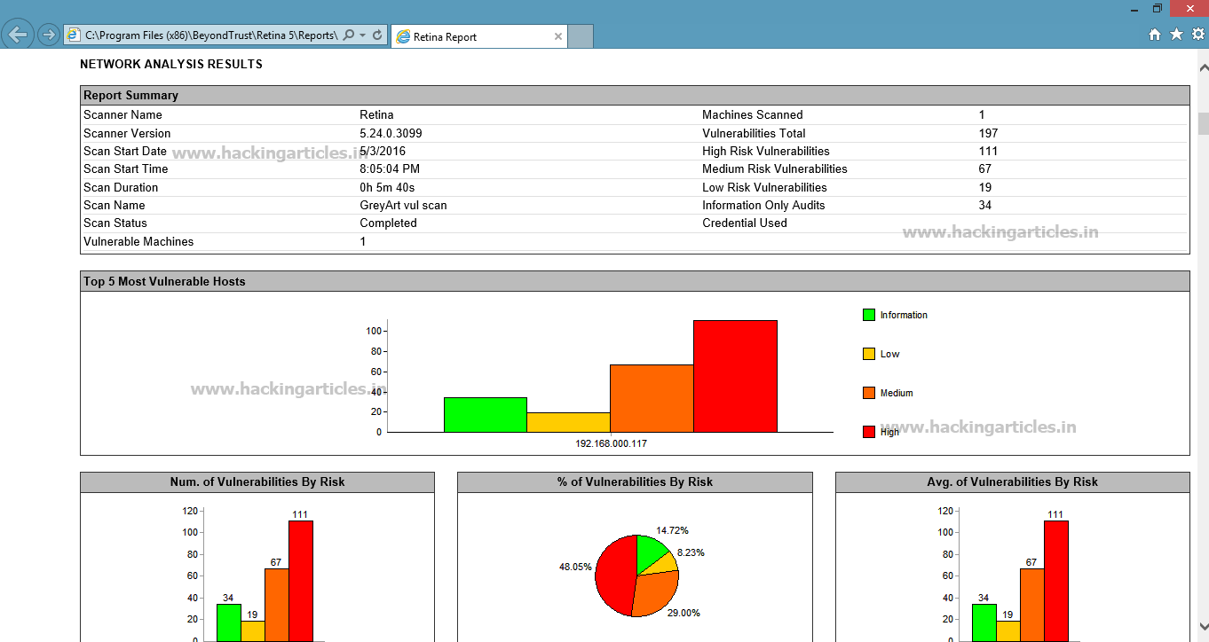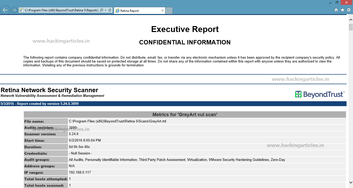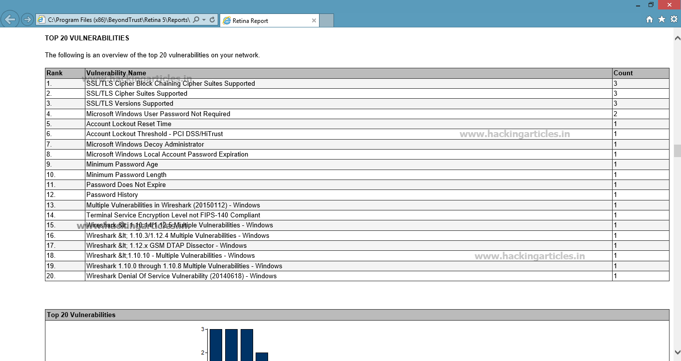 Click on the internet explorer icon. Now you can see that Retina Network vulnerability scanner created a wonderful vulnerability report by explaining each and every vulnerability of the network.