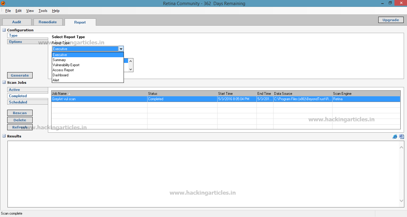 Now in Report section you can select what type of report you want to generate for your network penetration testing. Select the type of report according to your need from Report type menu and click on Generate button.